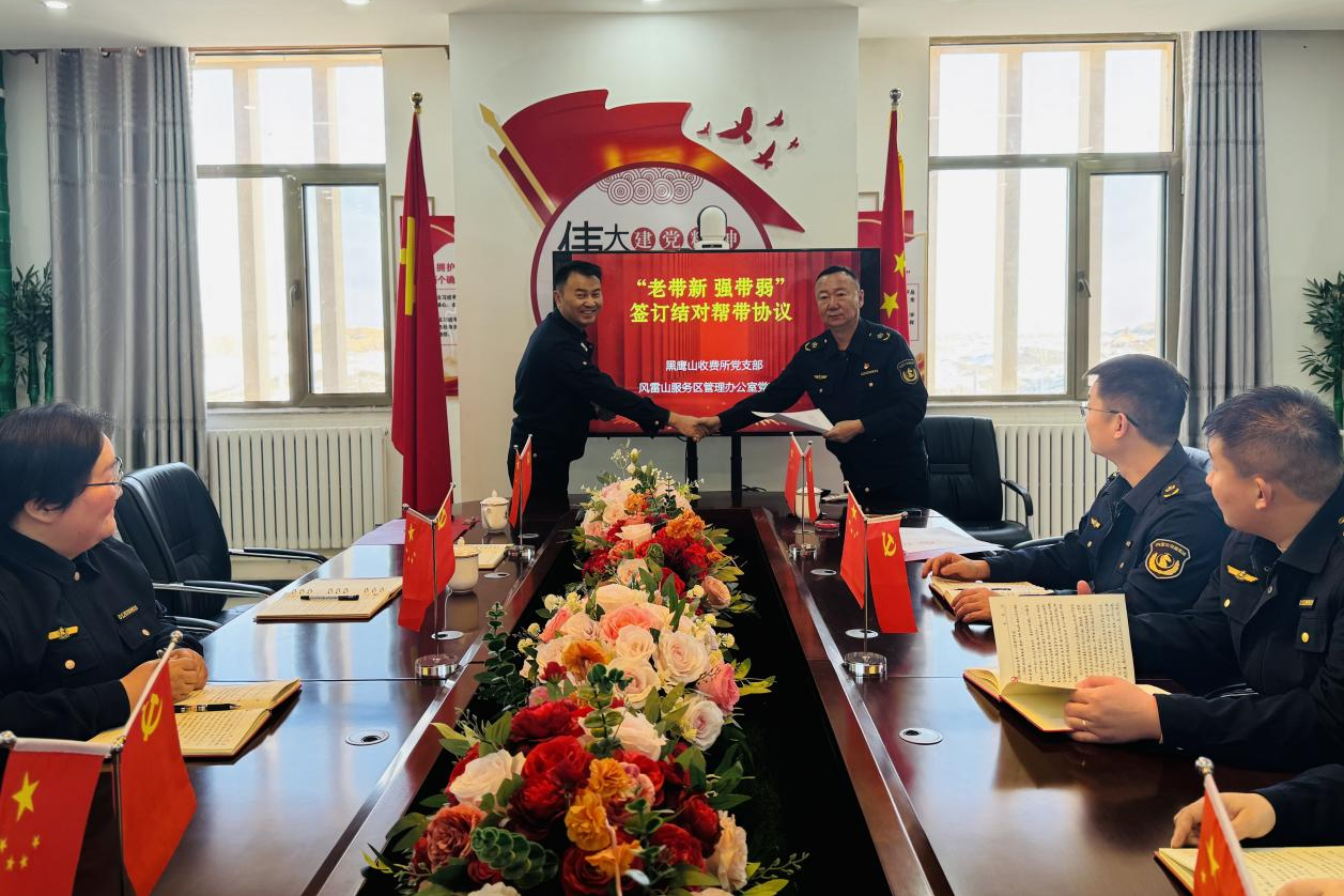 2026年伊始,万象更新启新程。黑鹰山收费所党支部作为堡垒支部,积极响应内蒙古交通集团有限公司党委及阿拉善分公司党委“老带新、强带弱”结对帮带机制要求,主动担当、精准对接,与风雷山服务区管理办公室党支部正式签订结对帮带协议,以经验传承为纽带、以精准帮扶为抓手,奏响新年协同提质的奋进乐章。