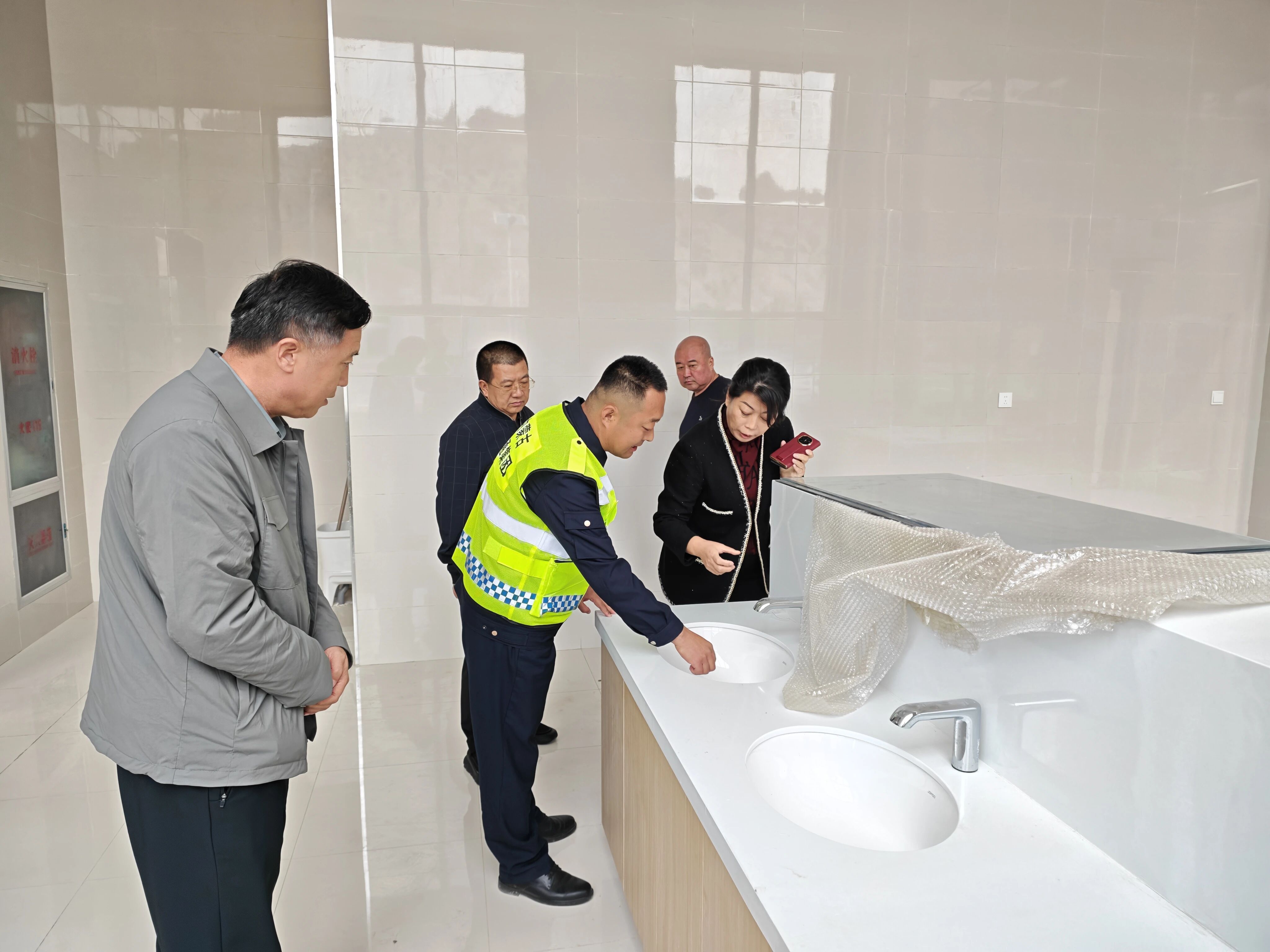 督导组详细了解施工进度、现场安全管理和功能布局情况,并对公共卫生间、停车区等重点区域进行了细致查看。在乌拉山服务区,针对即将启用的新卫生间,贾晓蓉强调,安全是运营的底线,必须把安全工作想在前、做在前。她要求立即组织开展全方位安全隐患排查,重点检查防滑垫铺设、应急通道畅通、用电线路绝缘等关键环节,确保安全责任落实到岗到人。同时,要完善安全提示标识,尤其在台阶、拐角等重点区域增设醒目警示,切实保障司乘人员安全。此外,要配齐职工防寒保暖设备,持续改善工作环境,提升职工幸福感和归属感。