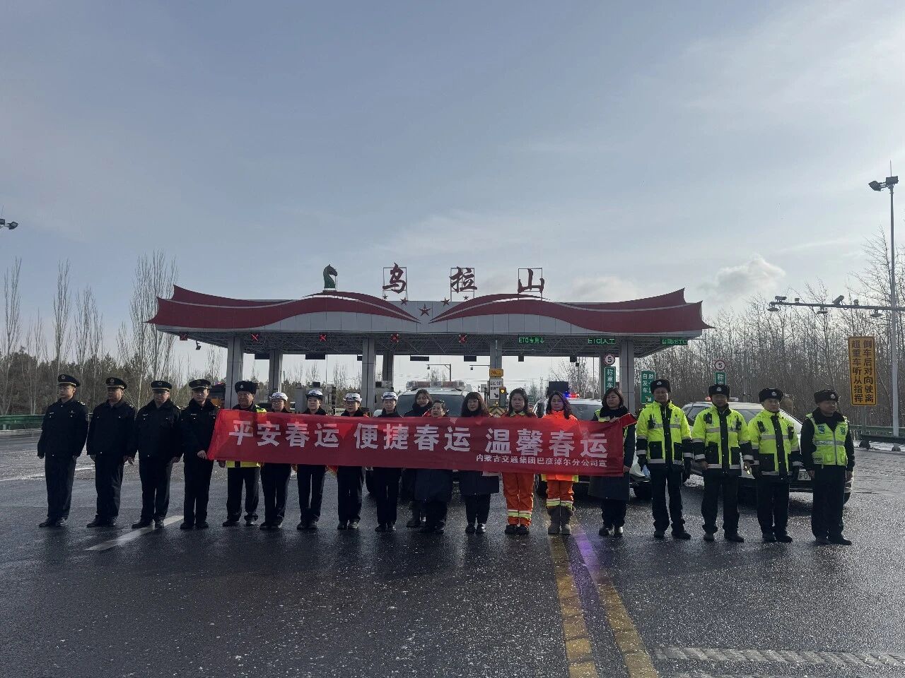 乌拉山高速公路收费所。乌拉山高速公路收费所以“平安春运、便捷春运、温馨春运”为主题,1月30日10时同乌拉山高速交警、路政,乌拉山养护作业中心,共同开展“春运”活动启动仪式,对出行司乘人员宣传交通安全及志愿服务。全力做好春运安全生产和服务保障各项工作,确保2026年春运工作有力有序,强化主动服务意识,提高便民服务质量,设置便民服务台,通过悬挂宣传条幅、发放福字、暖宝宝、节日贺卡、宣传单等,加强交通秩序维护、强化疏堵保畅,同时配备开水、简易包扎纱布、创可贴、针线包、简易维修工具等,开展形式多样的便民服务,营造和谐、舒适的通行环境。用实际行动确保每一位司乘人员温暖出行,平安回家。同时认真落实国家绿色通道政策,为春节期间鲜活农产品车辆提供安全、快速、便捷的通行保障服务。努力为人民群众欢度春节、平安出行创造畅通的道路交通环境。