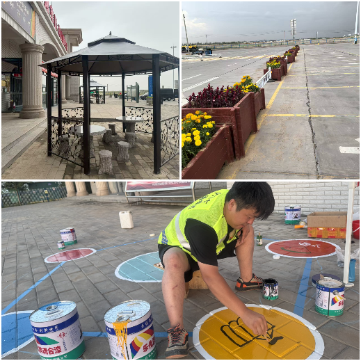 入夏以来,青山服务区持续推进改善服务区场区环境,一是对场区内花箱进行翻新油刷,给原本斑驳的花箱换上“新装”,锃亮整齐地守护服务区的绿意;二是工作人员栽种的鲜花全部成活,为服务区增添鲜活的亮色,让过往的司乘停留驻足,驱散赶路的疲惫;三是在场区打造凉亭,不仅为旅客提供了夏日遮阳避雨的休憩角落,还增加了一道风景线,让每一次短暂的停留,都多了份舒适;四是服务区工作人员化身“创意画师”,在服务大楼前的地面手绘出色彩斑斓的“游戏天地”,彩色的跳格子、憨态可掬的熊猫跳远、五彩的水果蹲,把童年游戏“跳”进旅途,为旅途中的大朋友、小朋友增添趣味,让他们在服务区留下美好的记忆。