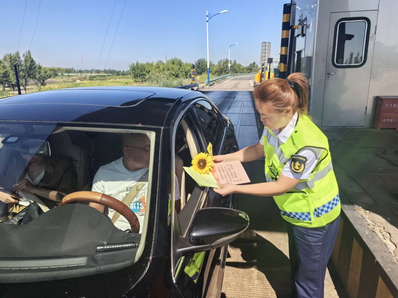 收到礼物的司乘们惊喜不已,脸上洋溢着幸福的笑容。“没想到在收费站能收到七夕节礼物,太意外了,也很开心!”一位驾驶员接过鲜花后说道。除了送花,收费站还组织了安全宣传活动,为司乘递上安全宣传单,提醒司乘在出行中注意交通安全,遵守交通规则。“我们希望在这个特殊的日子里,不仅为司乘们带来节日的快乐,也能传递安全出行的理念”。