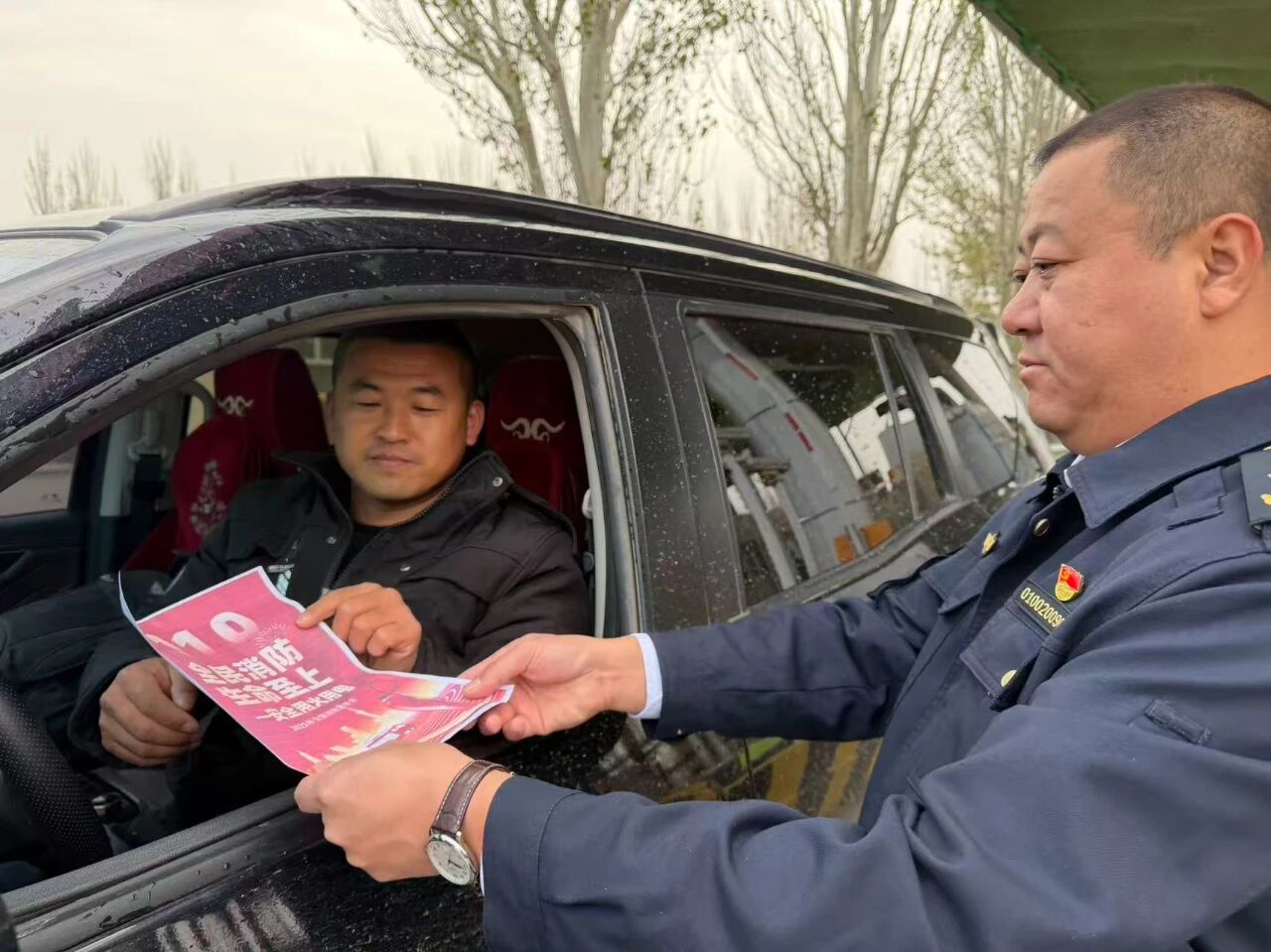 头道桥高速公路收费所在收费广场、办公区域、职工宿舍等重点场所张贴了内容丰富的消防宣传海报。海报以鲜明的色彩、醒目的标语,讲解“安全第一、预防为主、综合治理”要求,让职工和过往司乘在潜移默化中学习消防知识,时刻绷紧消防安全弦。同时,在收费广场向过往司乘发放消防宣传单。详细介绍了火灾预防常识、初期火灾扑救方法、火场逃生技巧以及消防器材正确使用方式等关键知识,耐心细致地为司乘讲解冬季防火防爆、车辆消防安全检查、应急避险等实用知识,针对司乘提出的消防安全疑问逐一解答,提醒大家重视日常消防安全细节,切实提高自我防护能力,有效扩大了消防知识的覆盖面和影响力。
