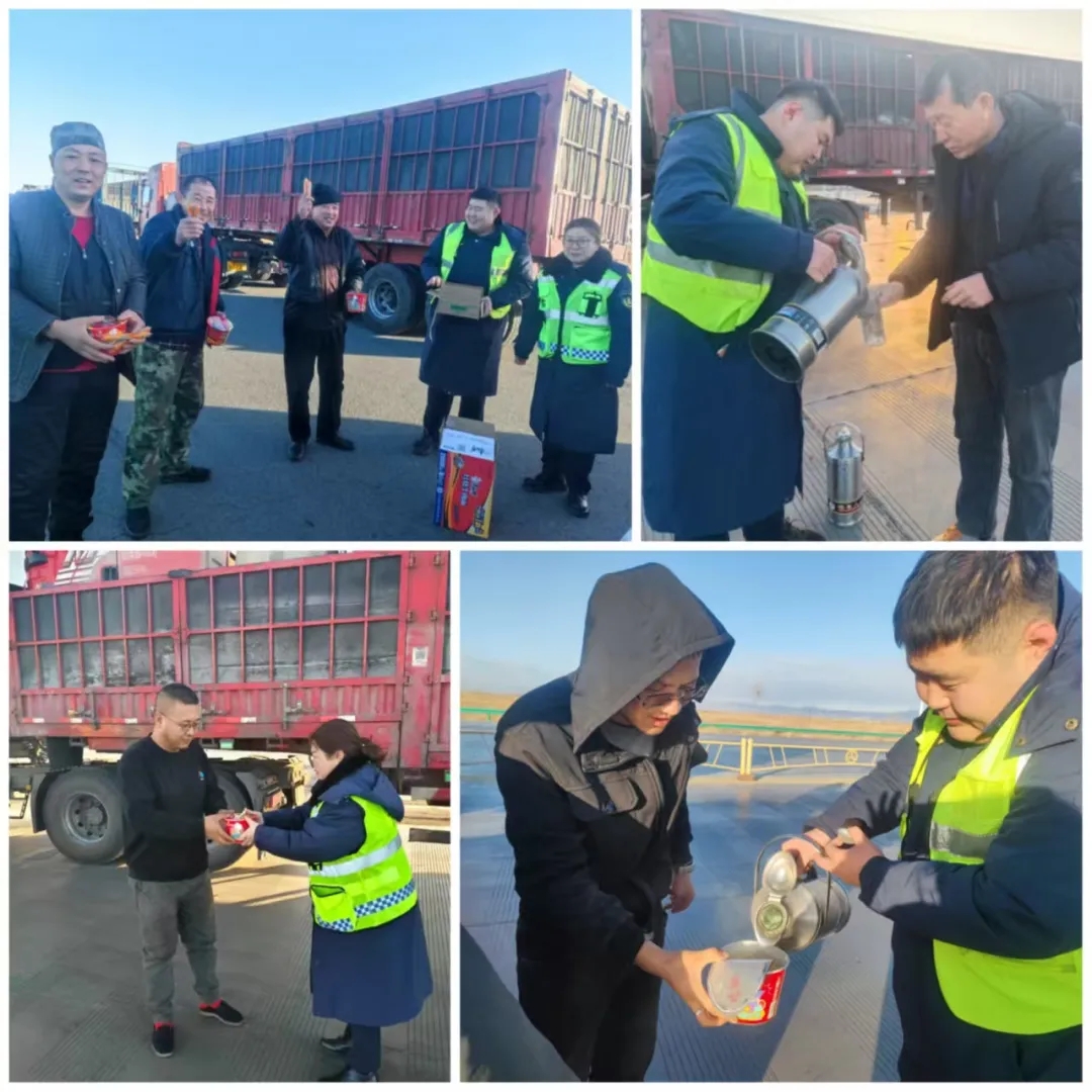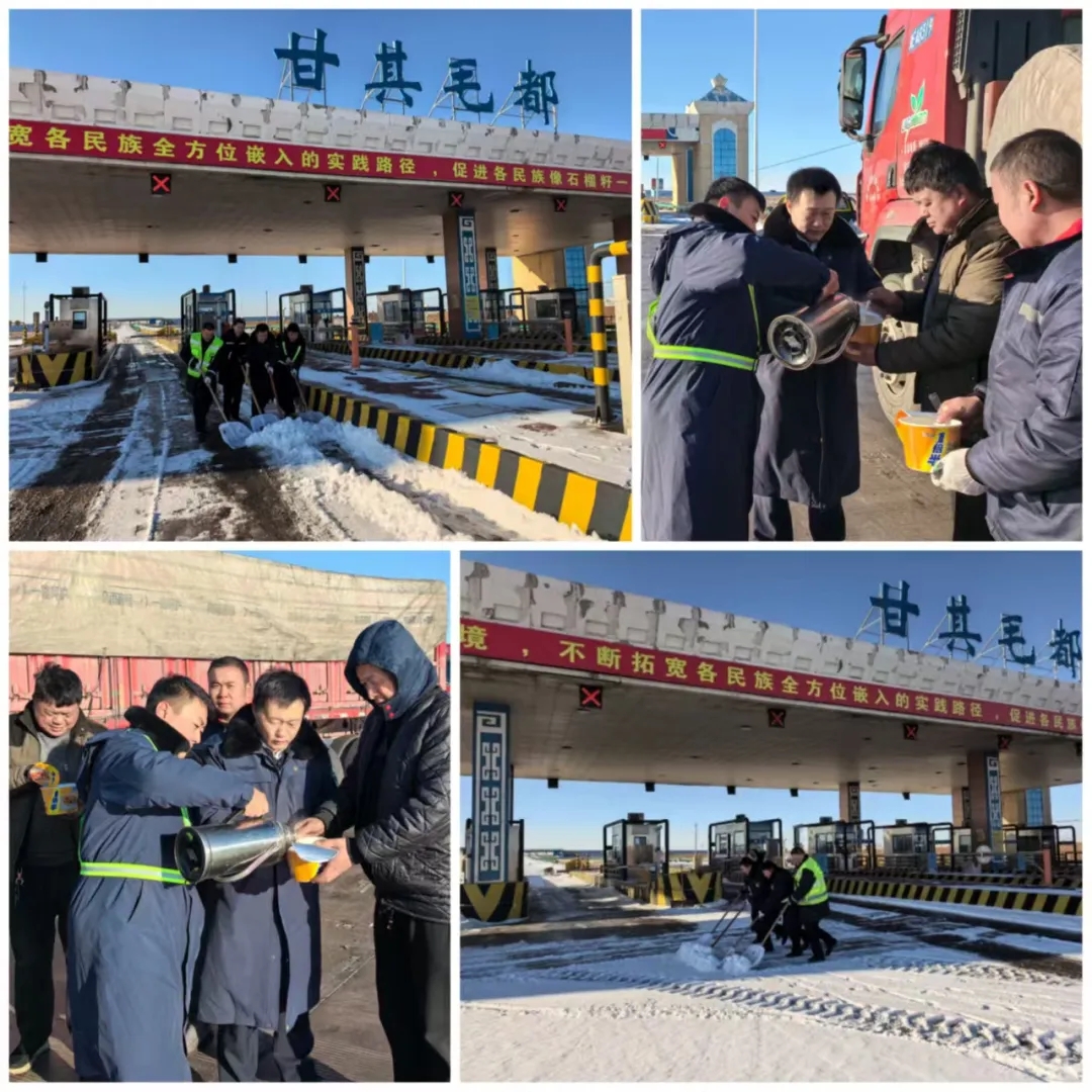 11月23日晚,甘其毛都地区降雪加剧,银装素裹的甘其毛都口岸面临保通考验。24日清晨,值班所长立即启动应急预案,发挥联勤联动机制优势,协调各部门协同作战。全体职工手持铁铲、雪铲投身积雪清除、车道开辟工作,严寒中热情不减,全力保障道路畅通与日常工作运转。同时,针对滞留收费广场的司乘,收费所准备了充足热水、泡面等物资,解决其生活需求。有司乘感慨:“原以为滞留会孤单无助,没想到收到如此无微不至的关怀,太感动了!”