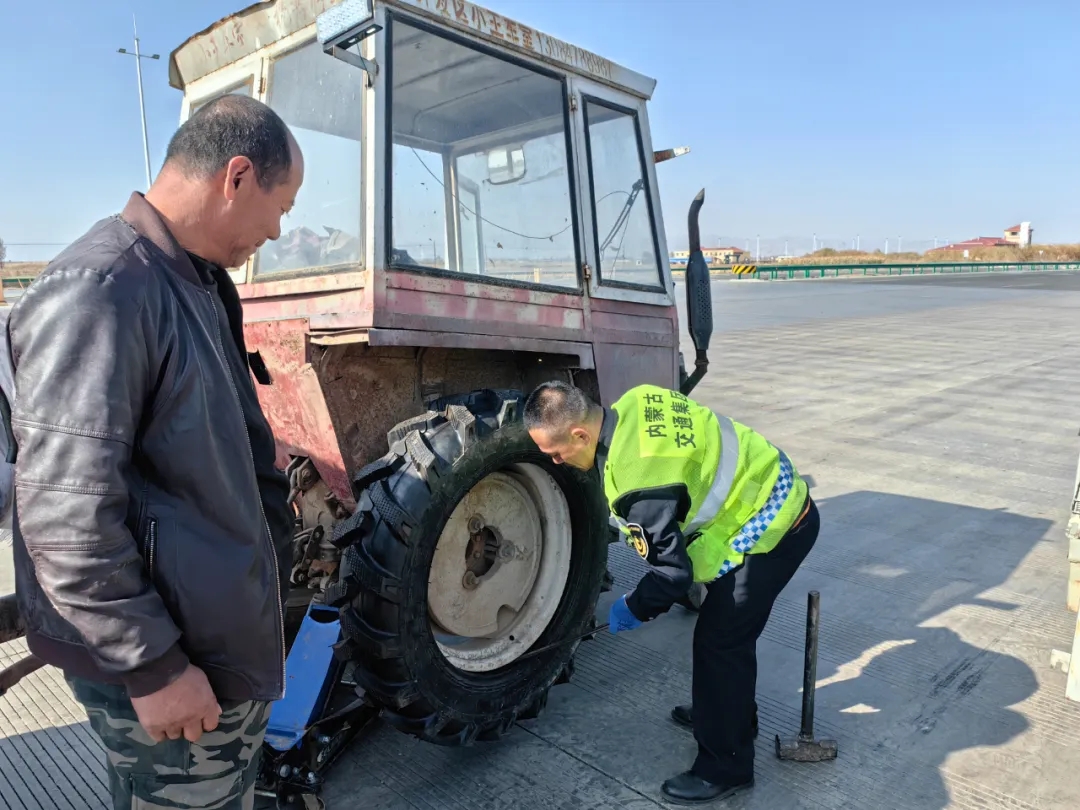 10月23日早班,狼山收费所收费班长在巡查收费广场时,看见广场东侧一辆满载牧草的农用四轮车“歪”在路边。司机师傅正蹲在轮胎旁皱眉,收费班长上前询问得知是四轮车爆胎需要更换轮胎,而司机是给牧民送牧草的,由于联系不到周边的修理工而犯愁。收费班长立刻掏出手机,帮忙联系了附近的修理工。