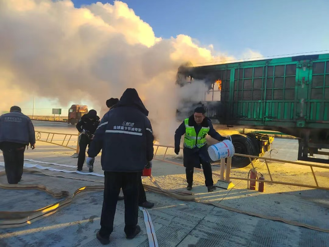 “太感谢你们了!感谢巴音前达门收费所的全体工作人员!要是没有你们及时灭火,我的车就彻底毁了!”事后,货车师傅紧紧握住工作人员的手反复道谢,言语间满是感激。此次应急救援,充分展现了前达门收费所工作人员快速响应、高效协作的专业应急能力,更以“顶严寒、战火情”的实际行动,为过往司乘的出行安全筑牢了坚实防线。