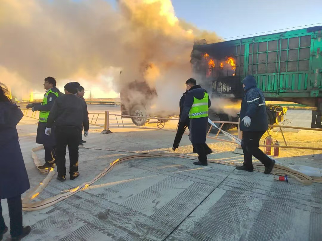 12月4日8时许,一辆驶向口岸方向的货车行至前达门收费所附近时,轮胎突然爆炸并引发火情,且起火点正处于车用液化天然气储罐下方,一旦罐体受热泄漏,后果不堪设想,现场情况极度危急。