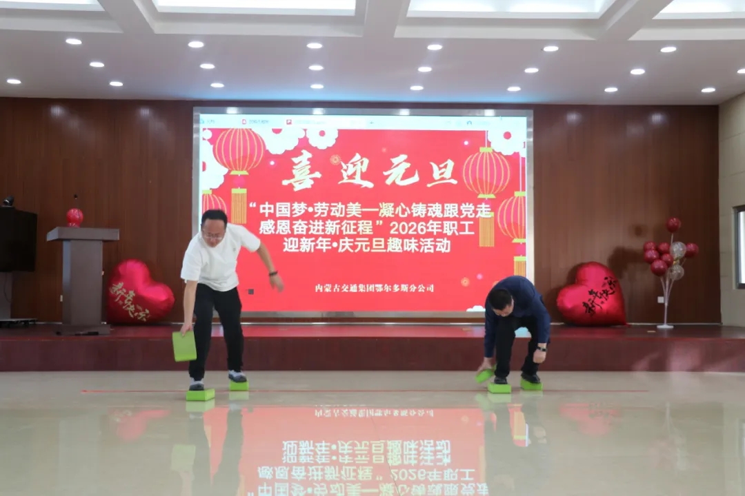 为迎接新年的到来,丰富职工业余文化生活,深化“爱企如家、以企为家”的企业文化理念,增强团队凝聚力和向心力,近日,内蒙古交通集团有限公司鄂尔多斯分公司精心举办了以“中国梦·劳动美——凝心铸魂跟党走 感恩奋进新征程”为主题的职工迎新年趣味活动。分公司机关及路网监测中心全体职工热情参与,在欢声笑语中共庆元旦。