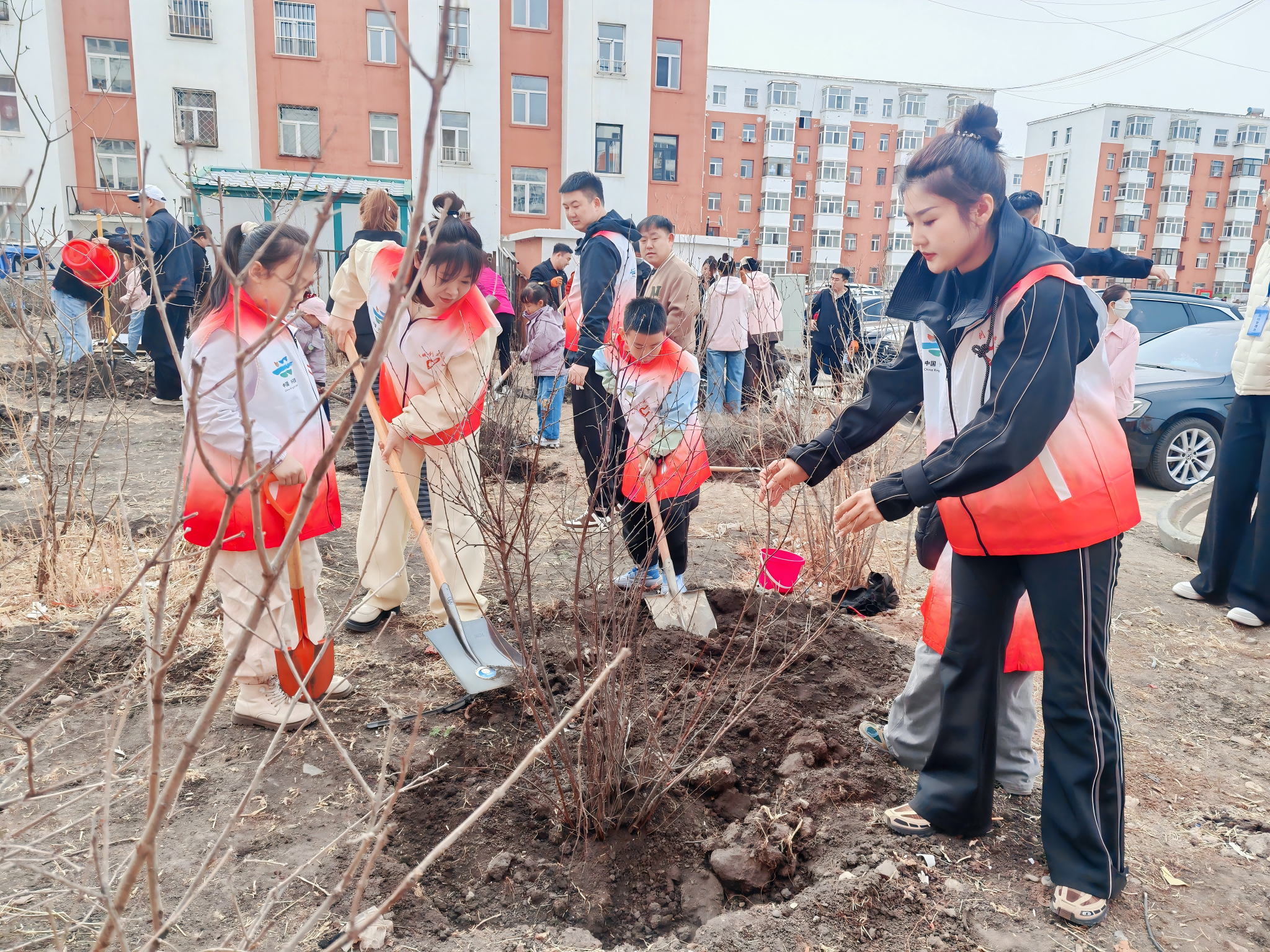 植树现场暖意融融、干劲十足。铁锹与泥土碰撞、水桶叮咚作响,大家带着子女一同上阵,与社区工作人员、各包联共建单位志愿者分组协作、默契配合,认真完成扶苗、填土、浇水等每一道工序,从生疏到熟练,亲手将一株株苗木栽入沃土,让新绿在兴安大地扎根生长。