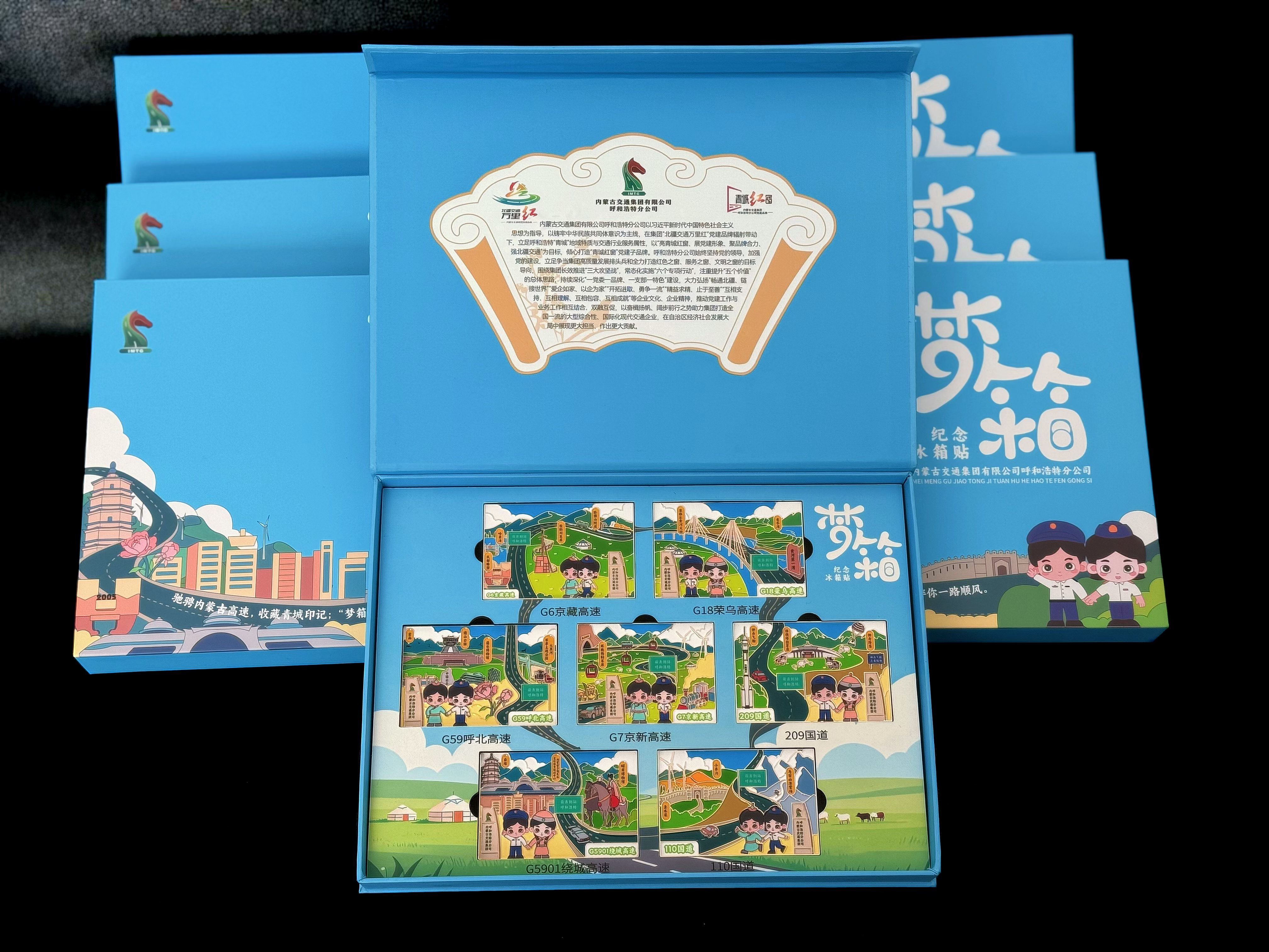 在集团“北疆交通万里红”党建品牌引领下,分公司紧扣“一党委一品牌、一支部一特色”建设要求,锚定“三大攻坚战、六个专项行动、五个价值提升”总体思路,融合分公司“青城红窗”党建子品牌理念,匠心打造“梦箱”系列文创冰箱贴,以具象化载体生动传递集团企业文化内核与北疆地域独特魅力。作品以分公司管辖的7条路域为核心依托,整合北疆沿线自然风光、人文历史与旅游文化资源,实现现代交通文明与地域文化底蕴的有机衔接。其中,“梦”字既承载着广大司乘畅游内蒙古的美好期许,更凝练了集团“畅通北疆、链接世界”的发展愿景;“箱”则以微观文化载体为纽带,集中展现分公司对地域文化的传承坚守与“爱企如家、以企为家”的企业精神,成为传递交通温度、彰显北疆魅力与国企担当的重要文化符号。