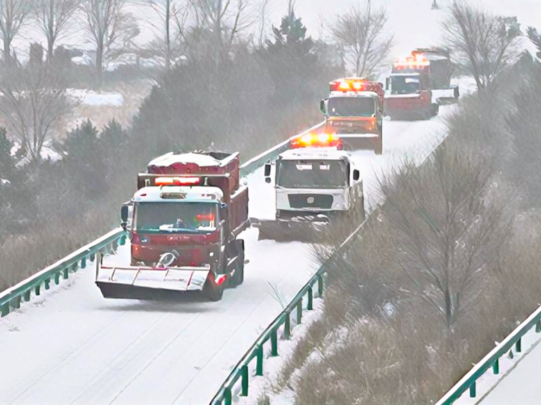 降雪前,交通集团专项部署低温雨雪冰冻天气防范工作,蒙通养护公司压实责任,制定《除雪调度方案》,明确职责划分,并完成103支应急队伍、1125名养护人员集结,检修除雪车、装载机等专业设备,在急弯陡坡等重点路段预置防滑料等6720吨,设立27处应急预置点,构建“人员、设备、物资、预案”四到位的防控体系。同时深化“一路多方”联动机制,与交警、路政、气象等部门实时共享路况、气象信息,划定责任区域,确保响应无延迟,清雪除冰实现“一键提速”。