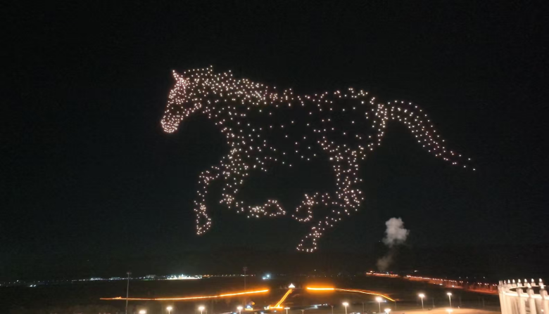 随着倒计时的声声倒数,千架无人机如点点星辰缓缓升空,在全自主编队飞行系统的精准调度下,于夜幕中迅速列阵、流转成形。刹那间,整片夜空化作流动的画卷:巨型跨年数字倒计时牵动人心,“家国同辉”的图景定格家庭团圆与国家昌盛的美好愿景,象征民族团结的蒙古马奋蹄疾驰、栩栩如生;“大美敕勒川”的壮阔风光与“2026新年快乐吖!”的暖心祝福交替呈现,光影流转间,既见科技之巧,更含人文之韵,每一幅画面都引得现场掌声阵阵、暖意涌动。