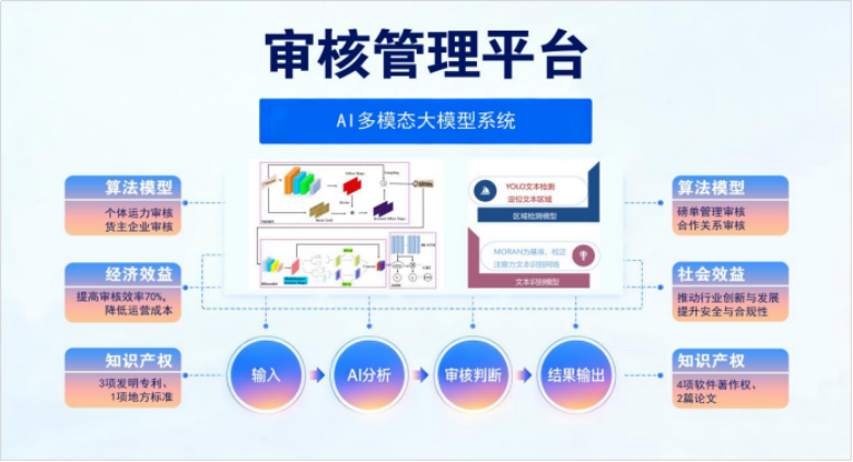 《网络货运综合物流管理系统数字化、智能化审核管理关键技术研究与应用》完成审核管理平台构建,借助大数据与人工智能技术实现海量数据实时分析、智能审核,跨部门协同效率提升70%,决策效率飙升3倍,为业务规模化扩张筑牢技术根基。