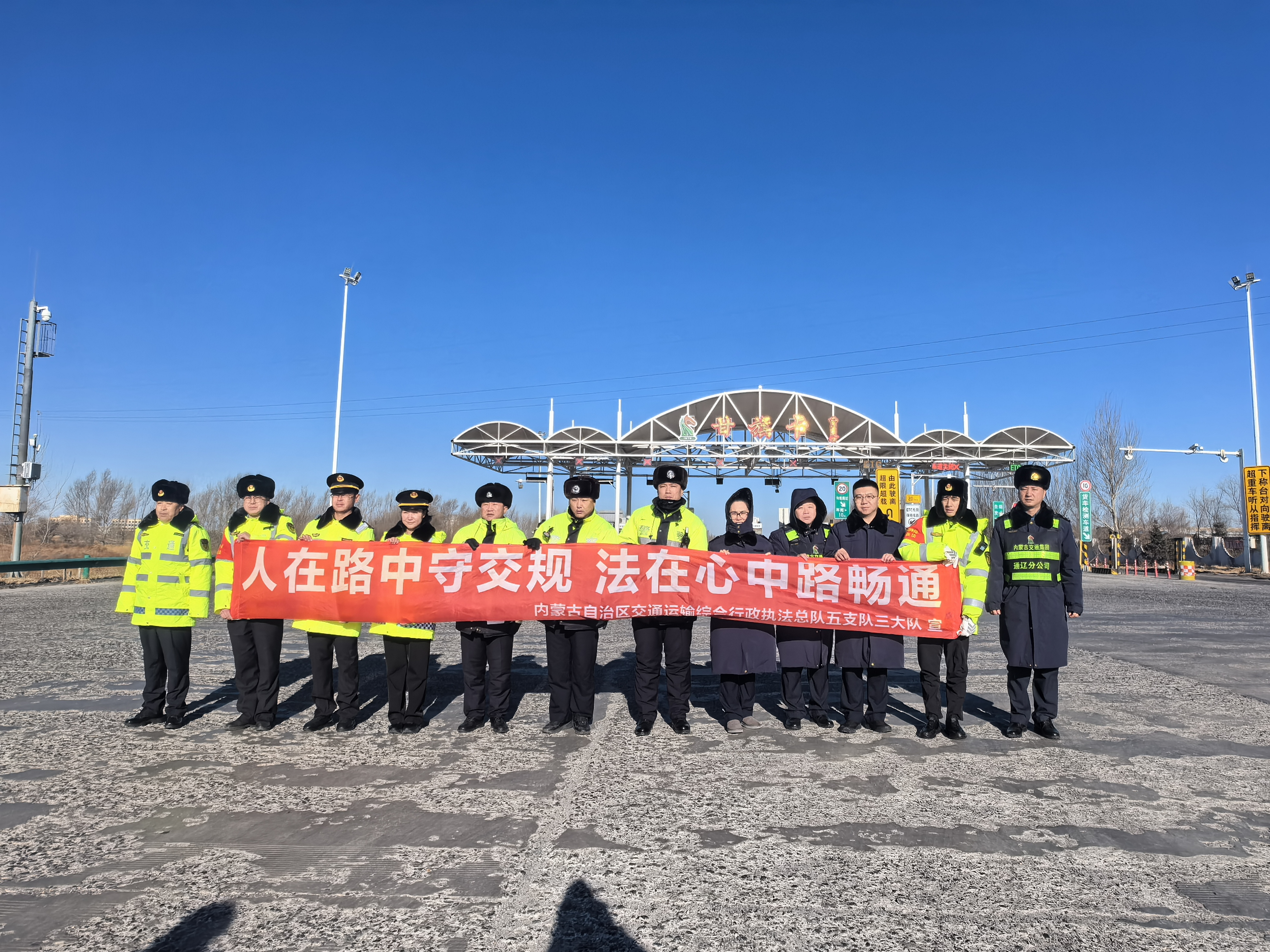 在第14个“全国交通安全日”来临之际,甘旗卡收费所联合辖区路政、高速交警部门,以“人在路中守交规 法在心中路畅通”为主题,扎实开展交通安全宣传活动,切实提升群众交通安全意识,护航冬季道路通行安全。