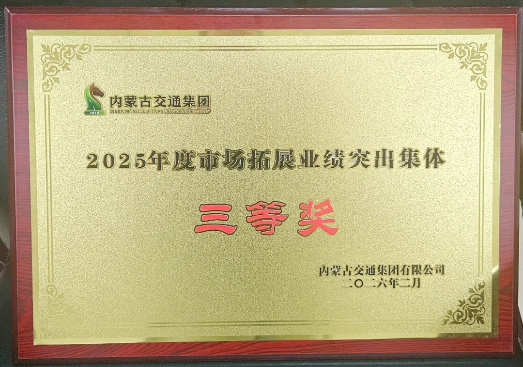 喜报传来,振奋人心!在内蒙古交通集团2026年工作会议暨一届五次职工代表大会上,乌海分公司荣获集团2025年度“市场拓展业绩突出集体三等奖”。这是集团对乌海分公司坚决贯彻战略部署、市场拓展勇毅前行的充分肯定,更是对全体干部职工凝心聚力、实干笃行的高度认可。