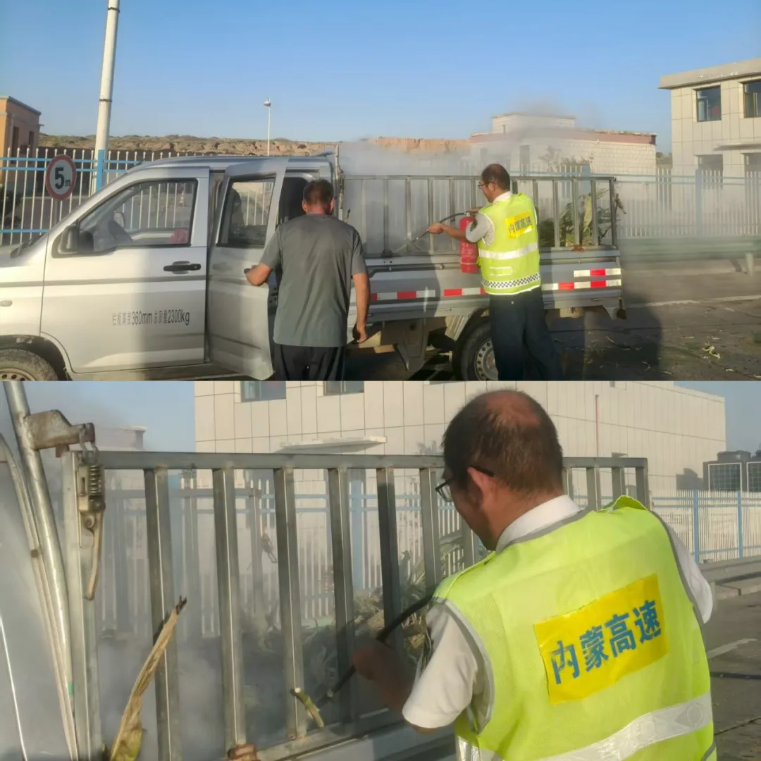 9月6日18时20分,巴拉贡收费所出口54车道突发紧急情况,一辆车牌号为蒙CPQ603的一型货车(车厢装载玉米秆)在通行过程中突然起火,干燥的玉米秆加速火势蔓延,现场浓烟弥漫,不仅威胁车辆自身安全,还对收费车道通行秩序和周边设施构成隐患。
