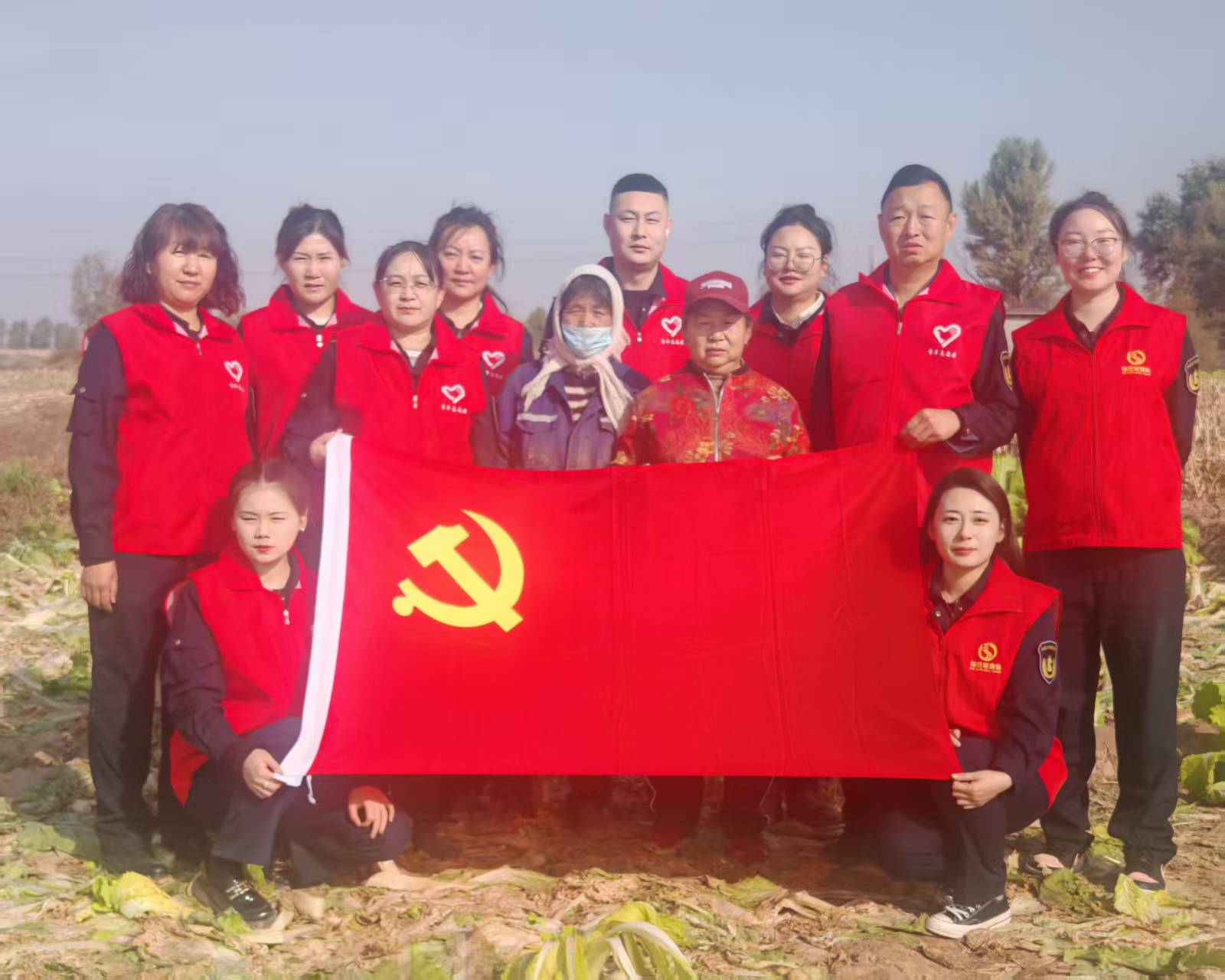 活动前期,支部党员深入调研、精准对接,走访了当地年迈农户,详细了解白菜、大葱、萝卜等应季蔬菜的成熟周期与销售需求。经多方沟通协调,最终确定以“田间直采+定向帮扶”的模式开展采购,力求打通助农“最后一公里”。活动中,志愿者们身着红马甲,带着满腔热忱走进了田间地头,迅速分工协作,紧锣密鼓地开展志愿服务活动。弯腰拔葱的志愿者细致清理根部泥土,动作从生涩到娴熟;手持镰刀收割白菜的身影在农户大娘的带领下在田间有序穿梭;搬运萝卜的志愿者则默契配合,将新鲜蔬菜码放整齐。大家干劲十足,现场呈现出一派热火朝天的丰收景象。党员们用双手丈量土地的厚重,在躬耕实践中体悟农耕辛劳,在协作互助中拉近了与农户的情谊,更在劳动中深刻感悟“一粥一饭当思来之不易”的朴素哲理。此次消费帮扶活动成果丰硕,累计采购农户种植的新鲜白菜1500斤、大葱180斤、萝卜180斤,不仅有效缓解了农户的“销售之困”,更为他们拓宽了增收渠道,切实将“助农惠民”落到了实处。