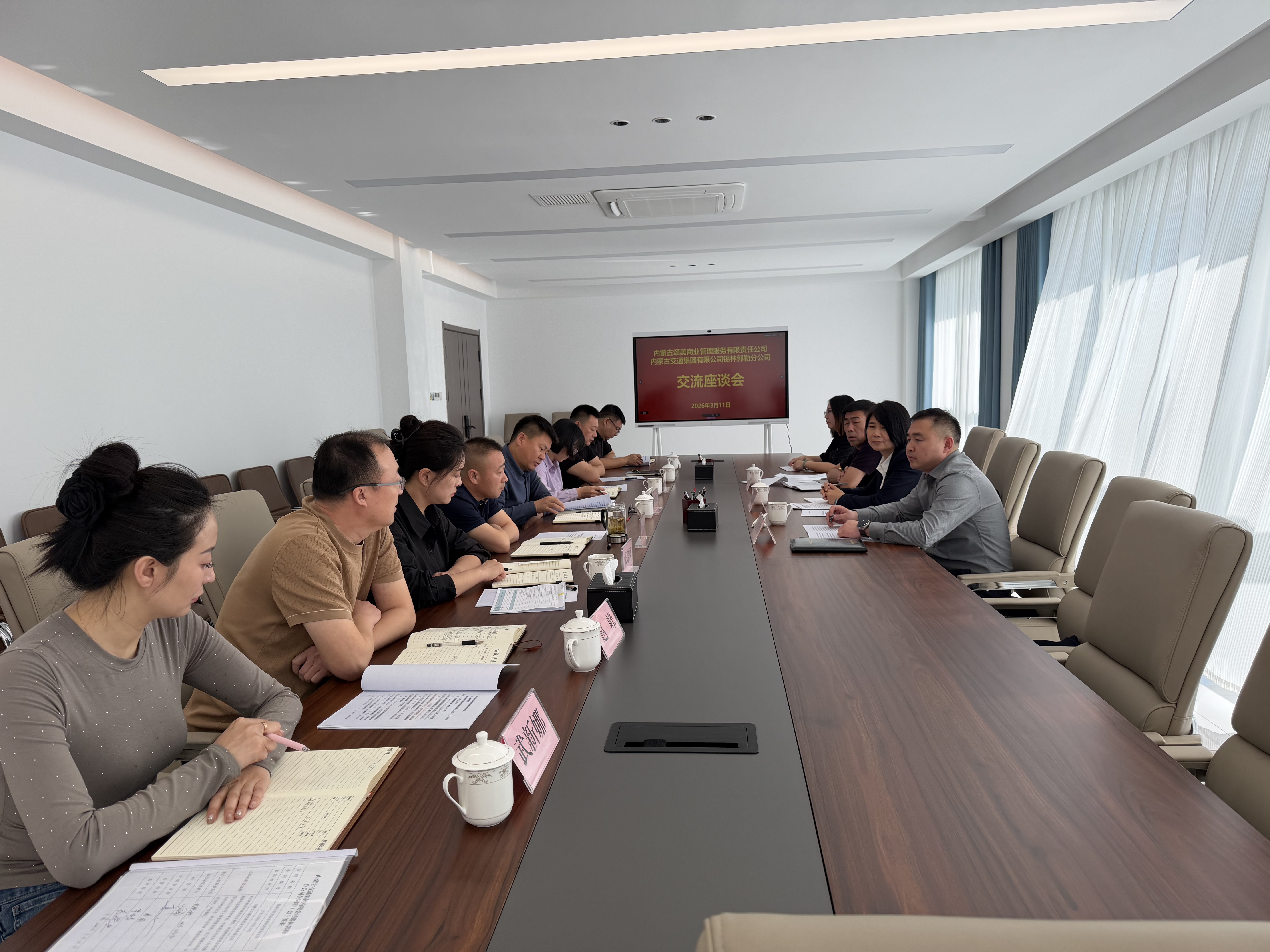 3月11日,锡林郭勒分公司党委书记李春峰与颂美商业公司总经理陶海洋一行座谈交流,双方围绕服务区运营品质提升、经营业态委托管理等内容进行深入交流。锡林郭勒分公司和颂美商业公司有关负责同志参加座谈。 李春峰介绍了分公司服务区的运营现状和未来发展规划。他指出,当前集团正全面深入推进服务区服务品质提升行动,锡林郭勒分公司积极响应,聚焦完善基础设施、丰富经营业态、提升服务效能等关键环节,积极探索符合实际、富有成效的新模式新路径。颂美商业公司在劳务外包及全业态委托管理领域拥有丰富的行业经验和成熟的管理体系,合作前景广阔。希望双方秉持务实高效的原则,建立常态化沟通协调机制,在合作实践中不断优化方案、总结经验,携手推动服务区运营服务品质与商业价值同步提升,共同为集团打造全国一流大型综合性、国际化现代交通企业贡献积极力量。 陶海洋对锡林郭勒分公司长期以来的支持与配合表示感谢,并介绍了颂美商业公司的业务布局、管理模式以及未来在服务区运营服务方面的规划。他表示,锡林郭勒分公司作为重要的合作伙伴,发展势头良好,合作业务范围广。颂美商业公司将进一步加强与分公司的深度对接,持续提升劳务外包管理水平和业态运营质量,全力保障合作项目高效推进。希望双方在现有良好合作基础上,不断拓宽合作领域、深化合作内涵,共同推动服务区运营管理工作再上新台阶,实现互利共赢、协同发展。