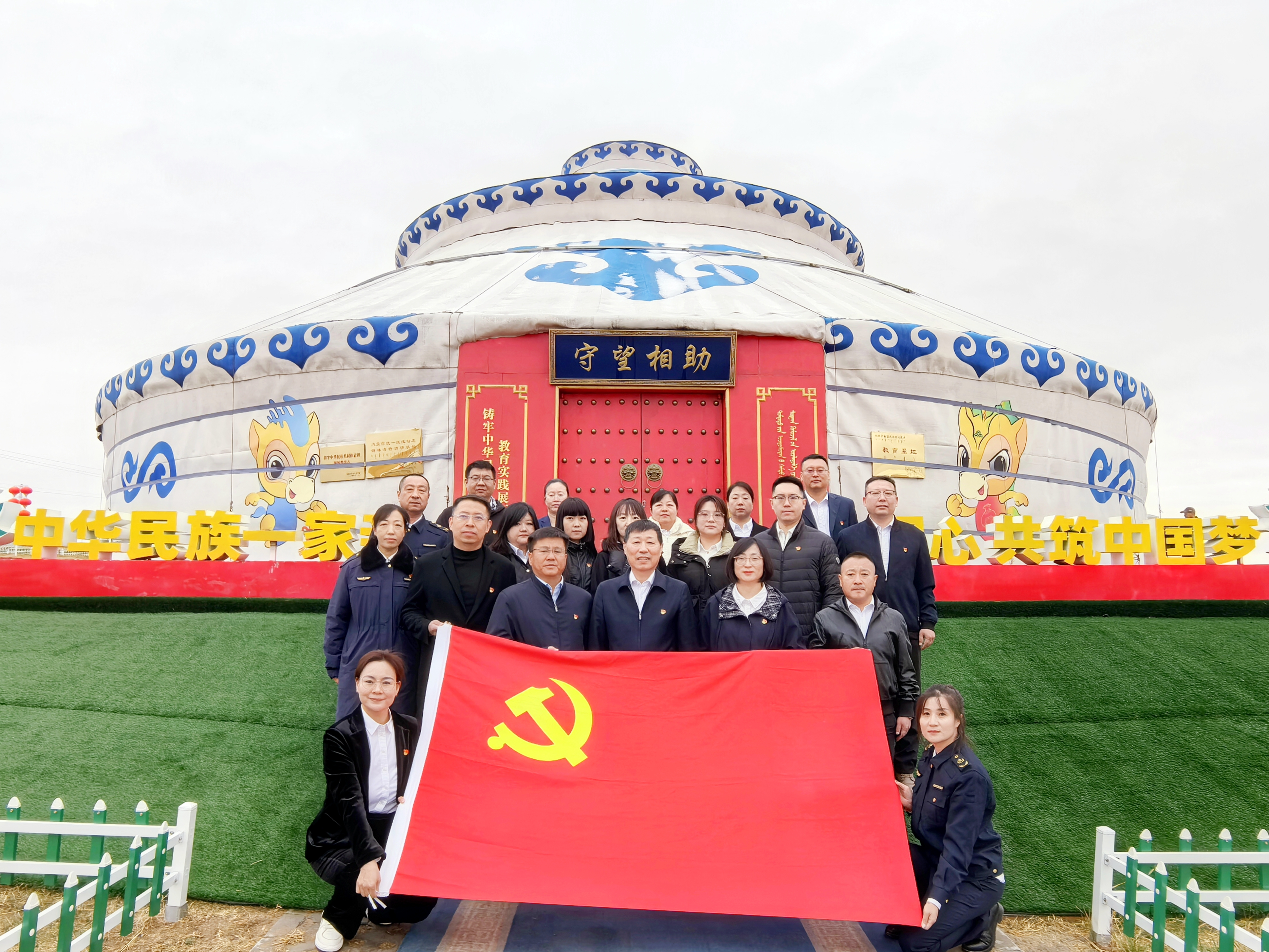 10月16日,内蒙古交通集团审计部党支部与锡林郭勒分公司机关党支部组织党员赴锡林浩特市“守望相助”团结奋斗铸牢中华民族共同体意识教育实践基地开展“重走总书记考察路线 重温总书记殷殷嘱托”主题党日活动,共20余名党员参加活动。