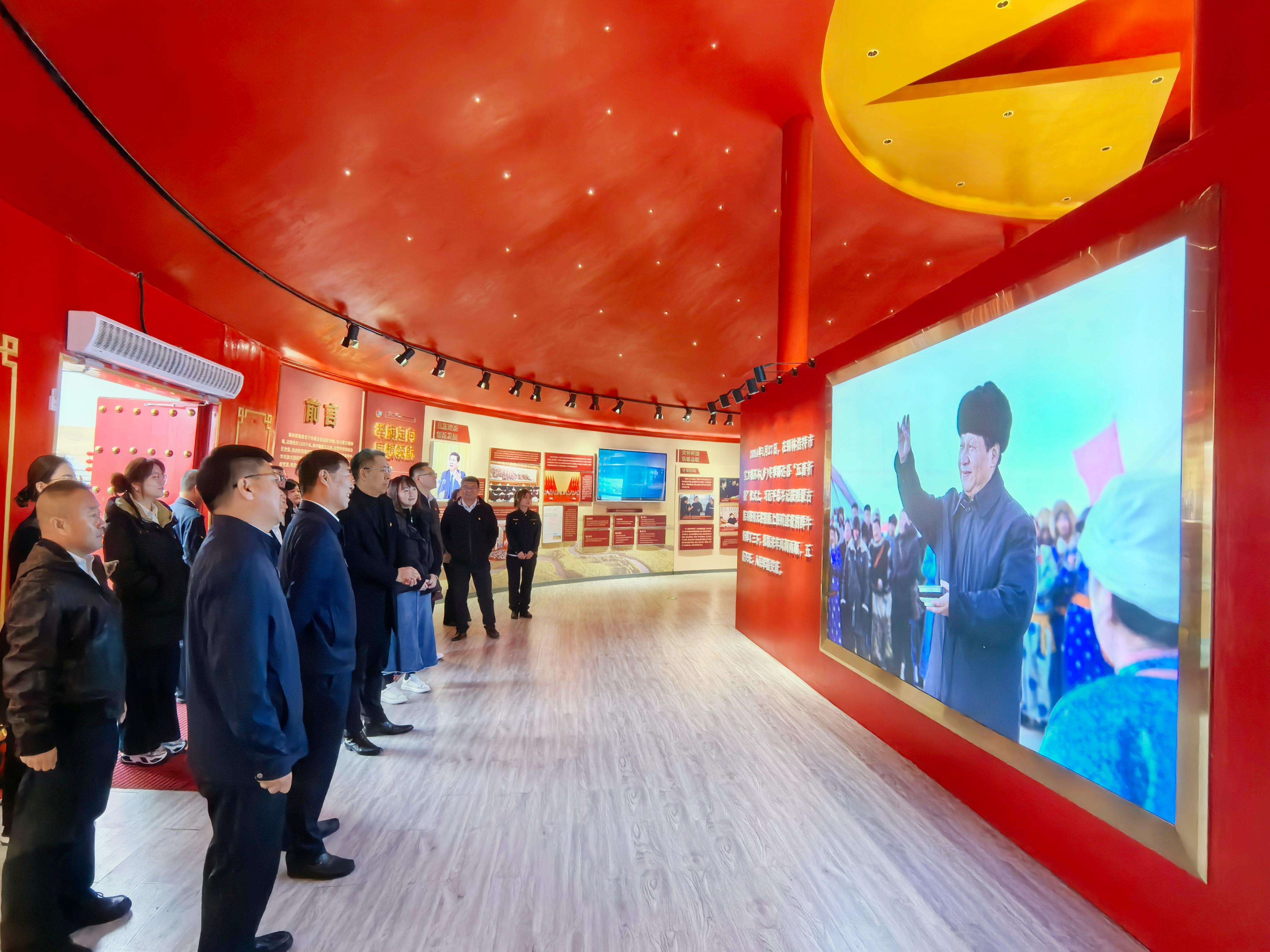 活动中,党员们沿着习近平总书记在锡林郭勒盟毛登牧场考察的路线,重走了总书记首次提出“蒙古马精神”的地点,沿着习近平总书记的足迹实地重温了总书记的重要讲话精神和对各族群众的殷殷嘱托。大家跟随讲解员的步伐,依次参观了守望相助主题展厅、蒙古马精神宣教厅,大家认真聆听讲解,不时驻足观看,相互交流学习,通过图片、文字、视频和现场讲解的方式重温了习近平总书记关于铸牢中华民族共同体意识的重要指示精神,对铸牢中华民族共同体意识有了更加深刻地认识,理解了“蒙古马精神”的丰富内涵。