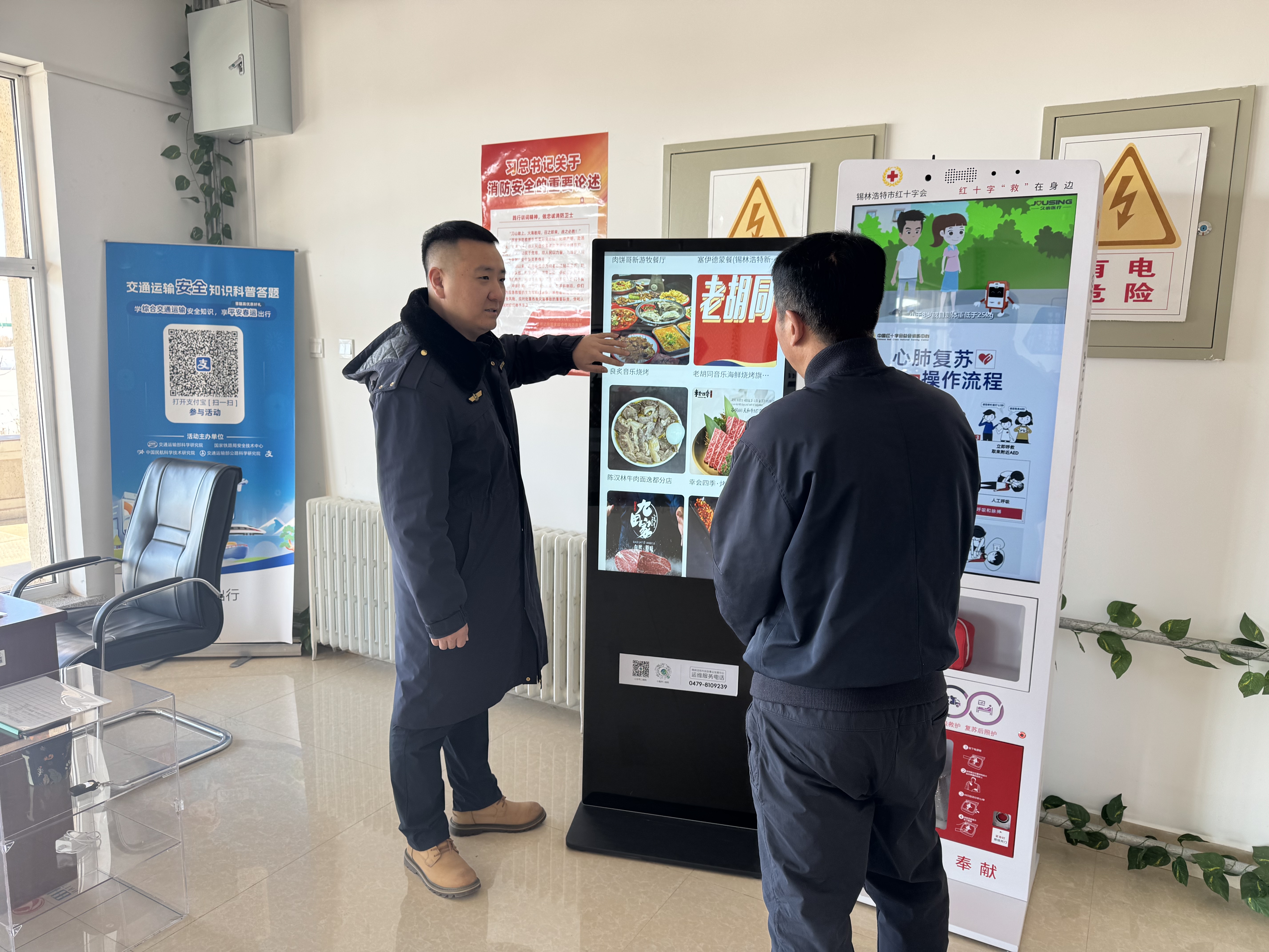 锡林浩特南服务区职工依托“云游锡林浩特”导游导览电子屏,为群众提供元旦假期和冬季旅游出行指引服务。
