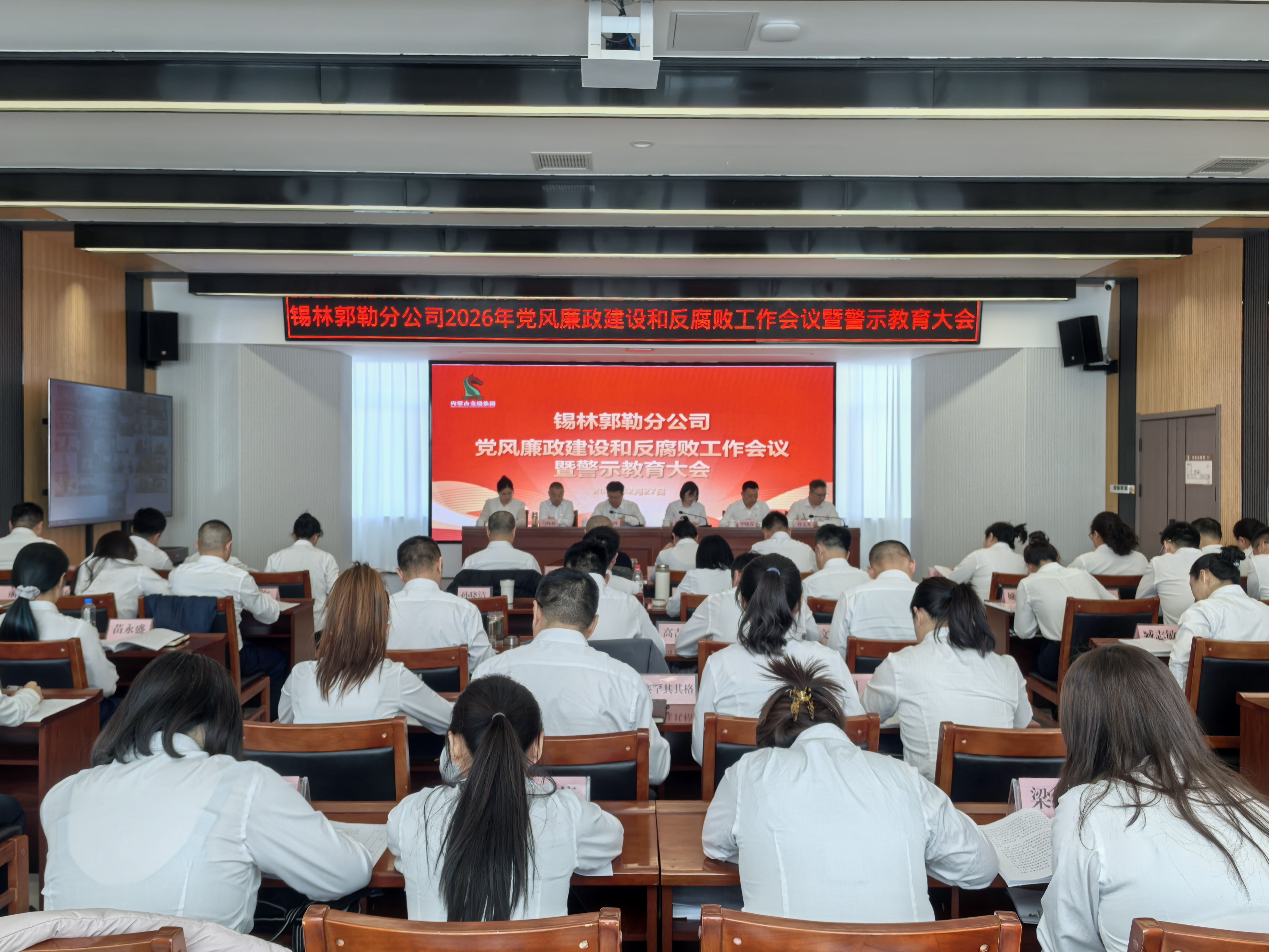 2月27日,内蒙古交通集团锡林郭勒分公司召开2026年党风廉政建设和反腐败工作会议暨警示教育大会。传达集团2026年党风廉政建设和反腐败工作会议暨警示教育大会精神,总结分公司2025年及“十四五”时期党风廉政建设和反腐败工作,分析当前工作形势,安排落实2026年重点工作任务。分公司党委书记李春峰出席会议并讲话,党委副书记、经理邵莉主持,分公司领导班子成员、各部门各单位负责同志和全体职工代表参加会议,各一线单位同步设视频分会场。 会上,听取审议了分公司纪委工作报告,全体与会人员还集中观看了廉政警示教育片。 会议指出,2025年及“十四五”时期,分公司党委紧跟集团党委步伐,始终以严的基调、实的举措推进全面从严治党,坚持用习近平新时代中国特色社会主义思想凝心铸魂,紧扣铸牢中华民族共同体意识主线,将党风廉政建设与通行费征收、服务区管理、养护监管、多元发展等业务深度融合,为分公司各项工作平稳推进提供了坚强纪律保障。 会议要求,做好2026年分公司党风廉政建设和反腐败工作,要坚持以习近平新时代中国特色社会主义思想为指导,深入贯彻党的二十大和二十届历次全会精神,聚焦集团“一体、两域、六业”发展布局和分公司主营业务,以“六个聚焦发力”为抓手,持续深化正风肃纪反腐。一要聚焦政治担当,把准基层发展“方向盘”,确保集团决策部署在分公司不偏向不走样。二要聚焦凝心铸魂,筑牢基层廉洁“思想堤”,树立正确政绩观,让崇廉尚洁成为新风尚。三要聚焦从严管理,建强基层干事“先锋队”,抓好“关键少数”,坚持严管厚爱结合。四要聚焦作风建设,擦亮基层服务“金名片”,恪守清正廉洁,以优良作风赢得司乘认可。五要聚焦动真碰硬,拧紧基层执纪“螺丝扣”,凝聚监督合力,深入开展以案促改。六要聚焦制度固本,扎紧基层权力“铁笼子”,筑牢风险防线,确保资金安全、项目安全、干部安全,为集团打造全国一流大型综合性、国际化现代交通企业贡献锡林郭勒分公司力量。
