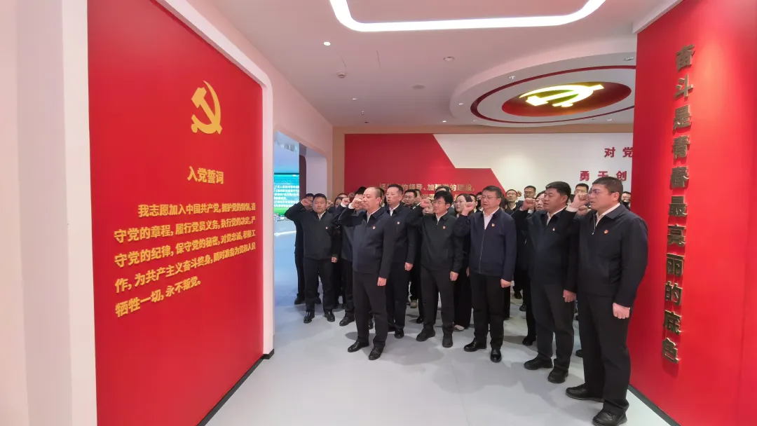 参观学习结束后,全体党员干部面向鲜红的党旗庄严宣誓,重温入党誓词。铿锵有力的誓言,既是对入党初心的深刻回望,也是对使命担当的郑重承诺,进一步强化了党员干部的党性修养和责任意识,让每一位党员都接受了一次深刻的党性教育和精神洗礼。