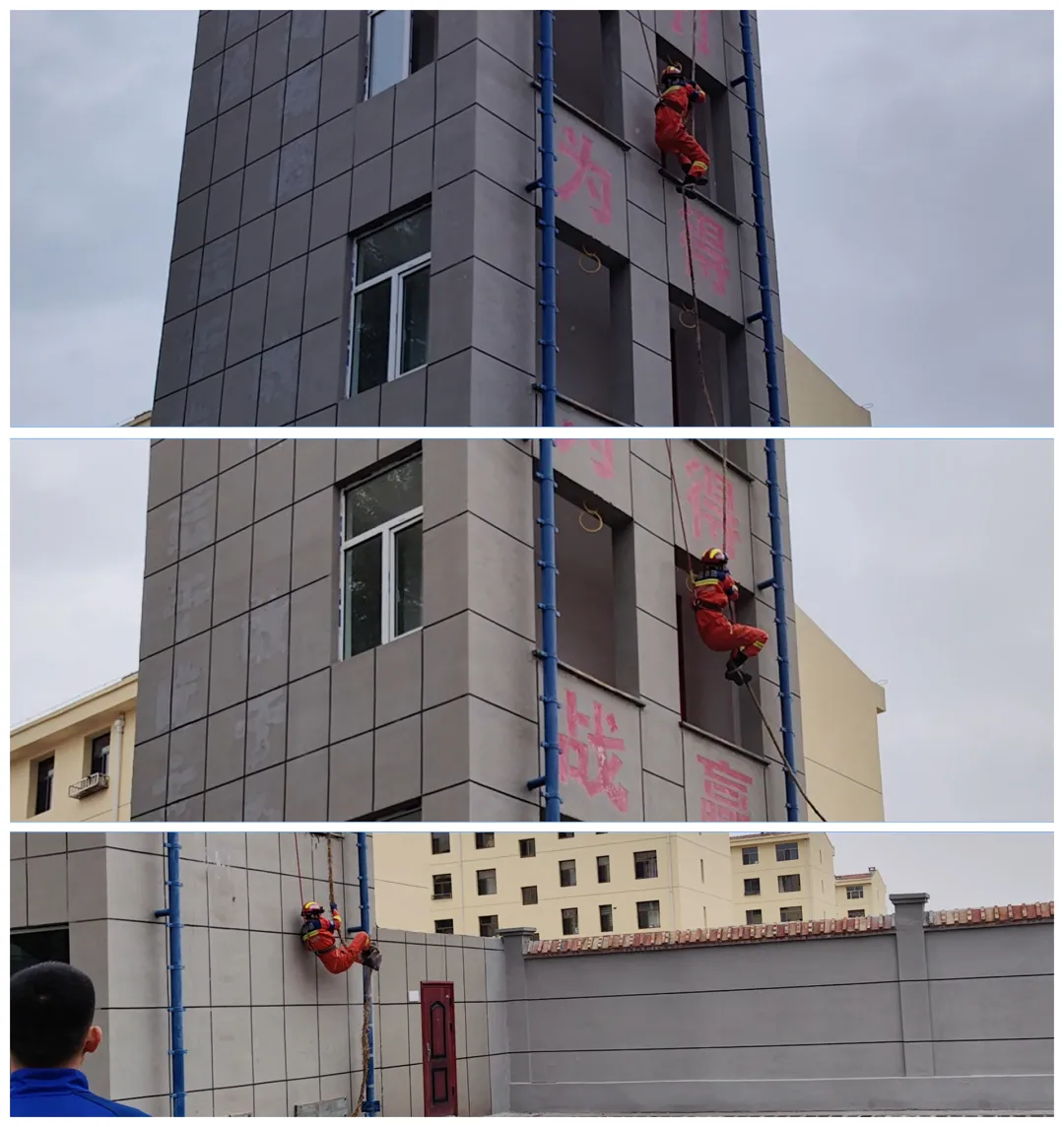 “预备—开始!” 随着指令落下,一道橙色身影瞬间从楼外徒手抓绳只用30秒的时间,就爬升到了4层楼的高度,如果说爬楼是耐力考验,障碍训练场则是力量与技巧的竞技场。在消防救援大队训练区,赛道上的重重关卡让人眼花缭乱,消防队员以飞快的速度翻越2米高的障碍墙,翻越时双手撑跃的爆发力,让围观人群忍不住喝彩;独木跨桥上脚步稳如磐石,哪怕木板轻微晃动也绝不减速。这些从来不是表演。每一次徒手登楼,都是在模拟高层火灾中的生命冲刺;每一次翻越障碍,都是在为实战中的破局蓄力。他们不是天生的英雄,只是把别人的“不可能”,练成了自己的“日常”。看着消防队员们互相检查装备、复盘动作的身影,突然读懂了“哪有什么岁月静好,不过有人替你负重前行”的深意。他们在绳上的每一次精准控制,过障碍时的每一次全力冲刺,都是为了在真实火情中,多抢回一秒生机。