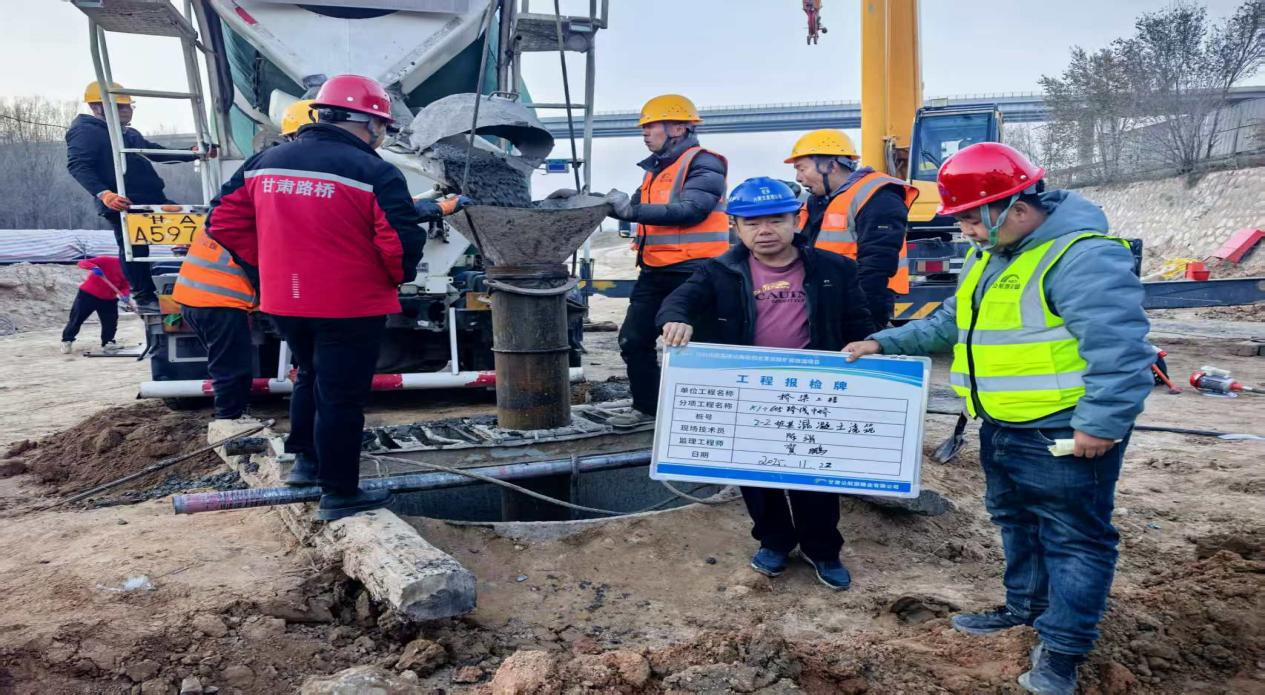 K1+605 跨线中桥坐落于兰州市安宁区忠和镇野生动物园周边,桥墩采用桩柱式结构设计。本次完工的 2-7 号首件桩基,桩长 25 米、桩径 1.20 米,是项目土建工程的重要开篇节点。为确保首件工程 “开门红”,各参建单位提前部署、严阵以待:施工准备阶段,参建各方针对施工人员、监理人员开展专项安全技术交底,明确桩基施工的安全规范与技术标准;监理公司G30忠茅项目ZMJL 总监办对施工方案进行严格审查,对发现的问题第一时间形成书面审查意见并督促整改,同时组织施工单位主要技术人员交流分享成熟经验与先进做法,以标准化、精细化筹备保障施工质量。